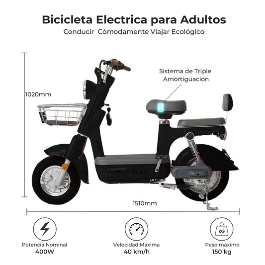 Bicicleta Eléctrica INLIFE-C6 | Batería de Plomo-Ácido 60V20Ah | Autonomía de 60–70 km | Controlador Síncrono Silencioso